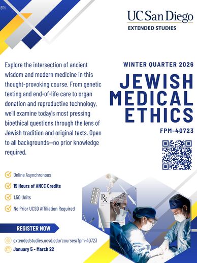 We’re excited to announce a new course at UCSD on Jewish Medical Ethics!